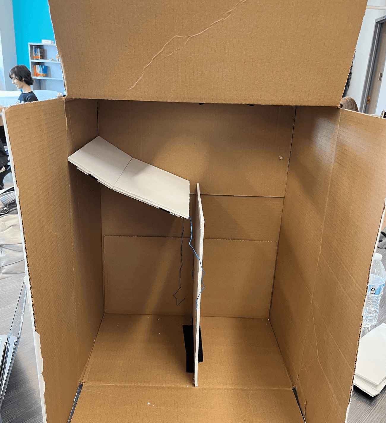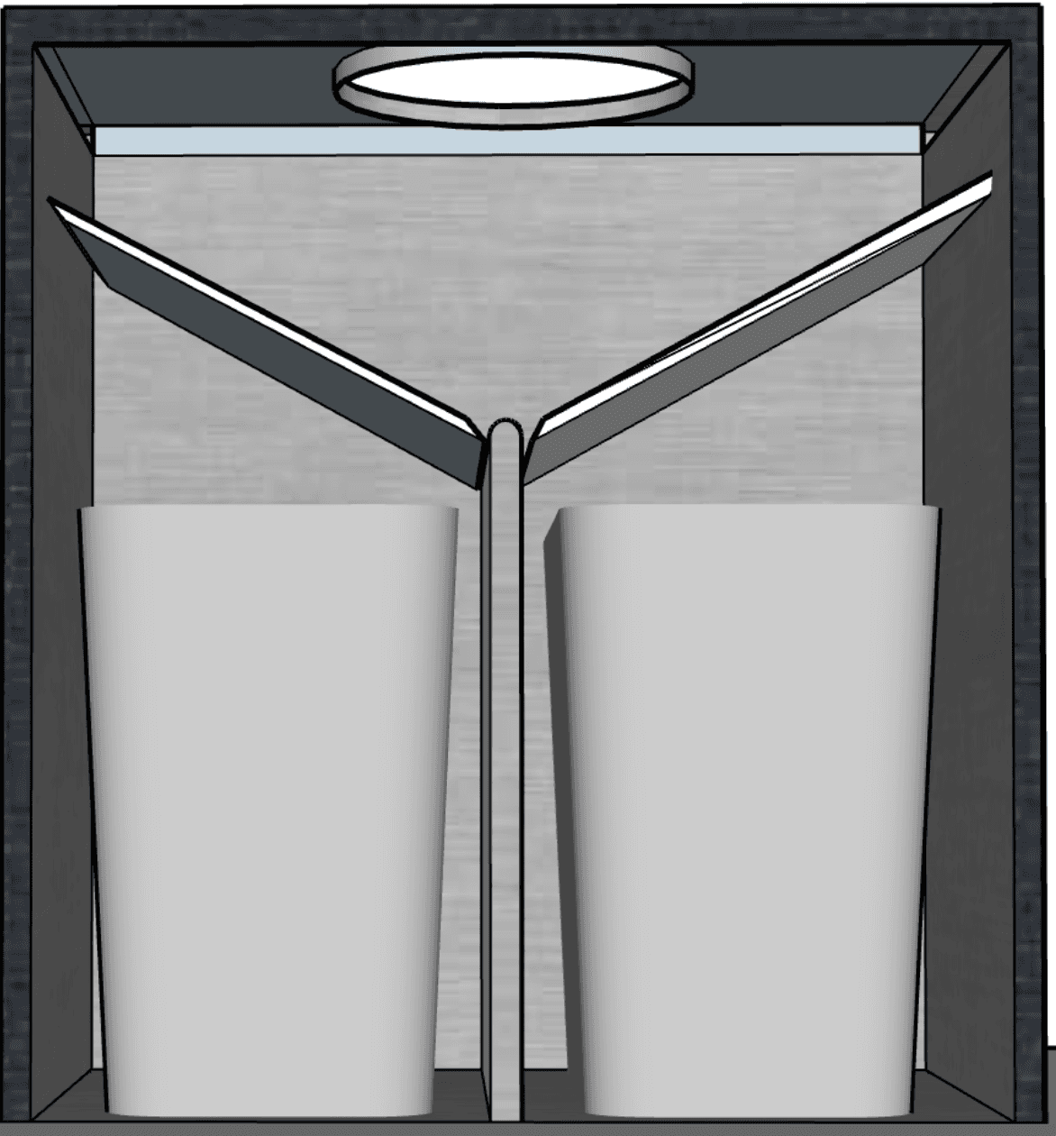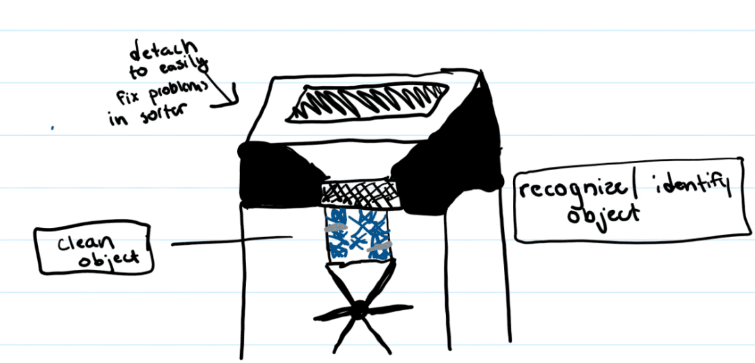 One issue identified from concept testing that we focused on was the sliding panels for the sorting mechanism. We used the model above to help us visualize the sliding panels. However, we noticed functionality errors that wouldn’t allow proper sorting and movement of the doors. Therefore, we used another program called Tinkercad to help us iterate this mechanism.