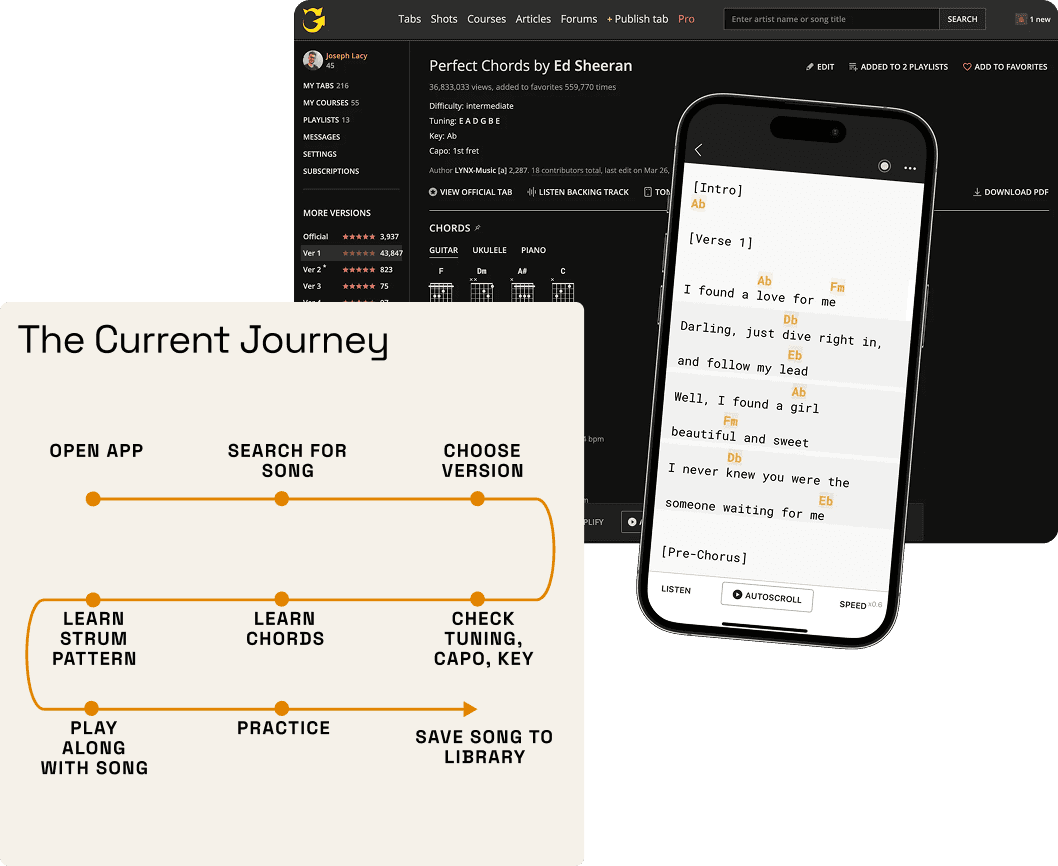I looked at Guitar tab creator + Tabmaker to identify patterns across experiences :